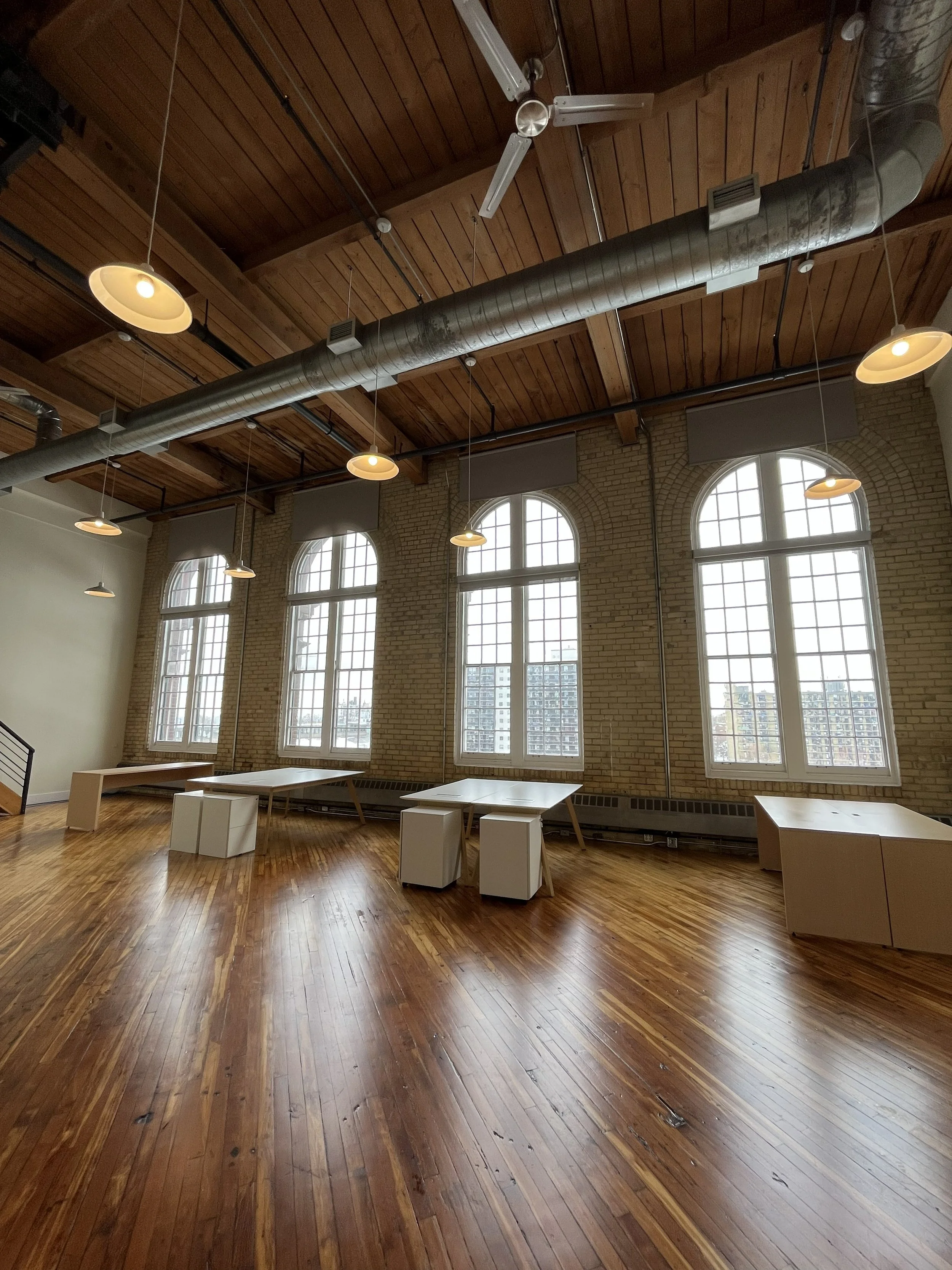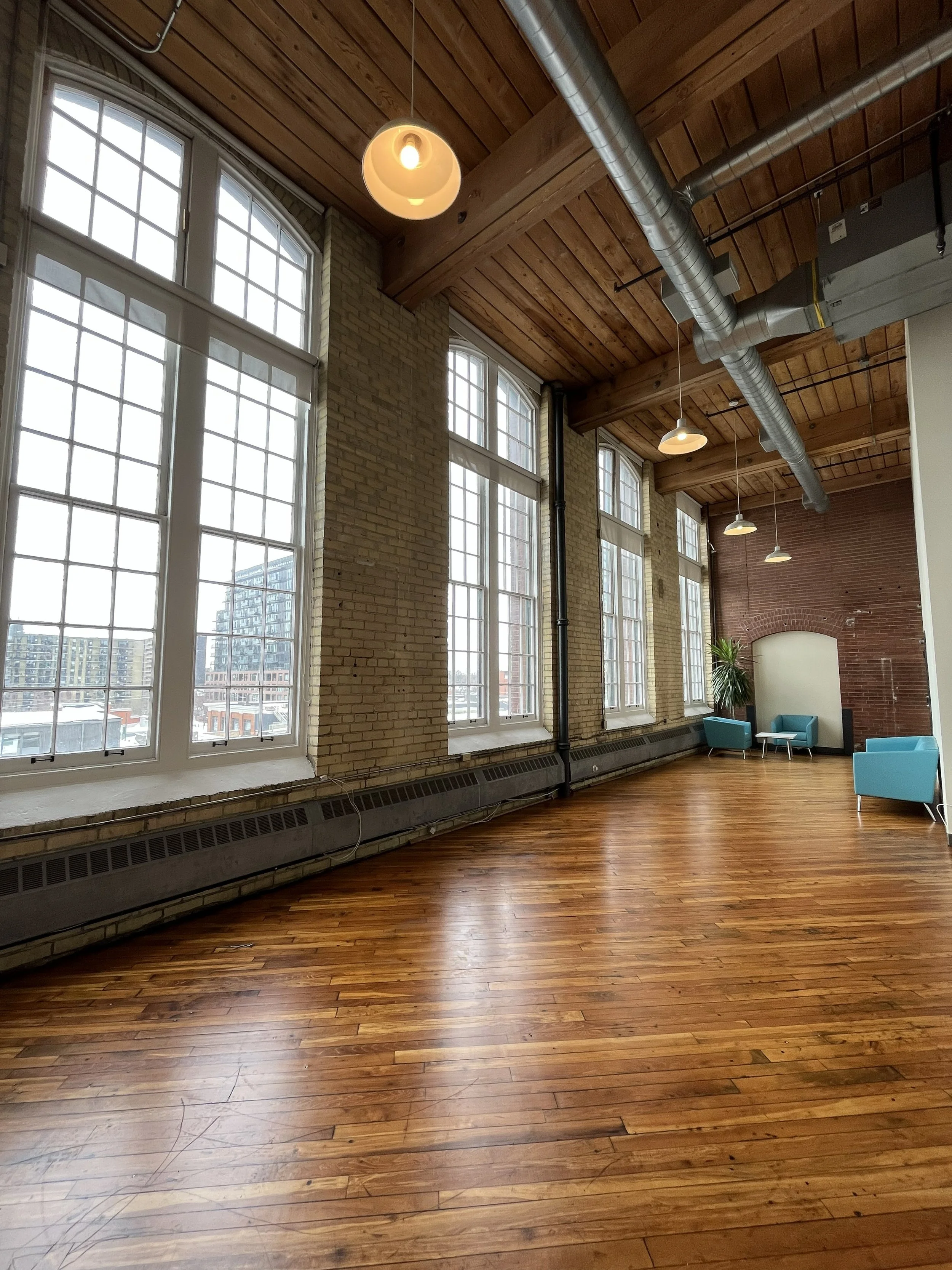 Features Bright brick and beam space. High ceilings, operable windows. West view.