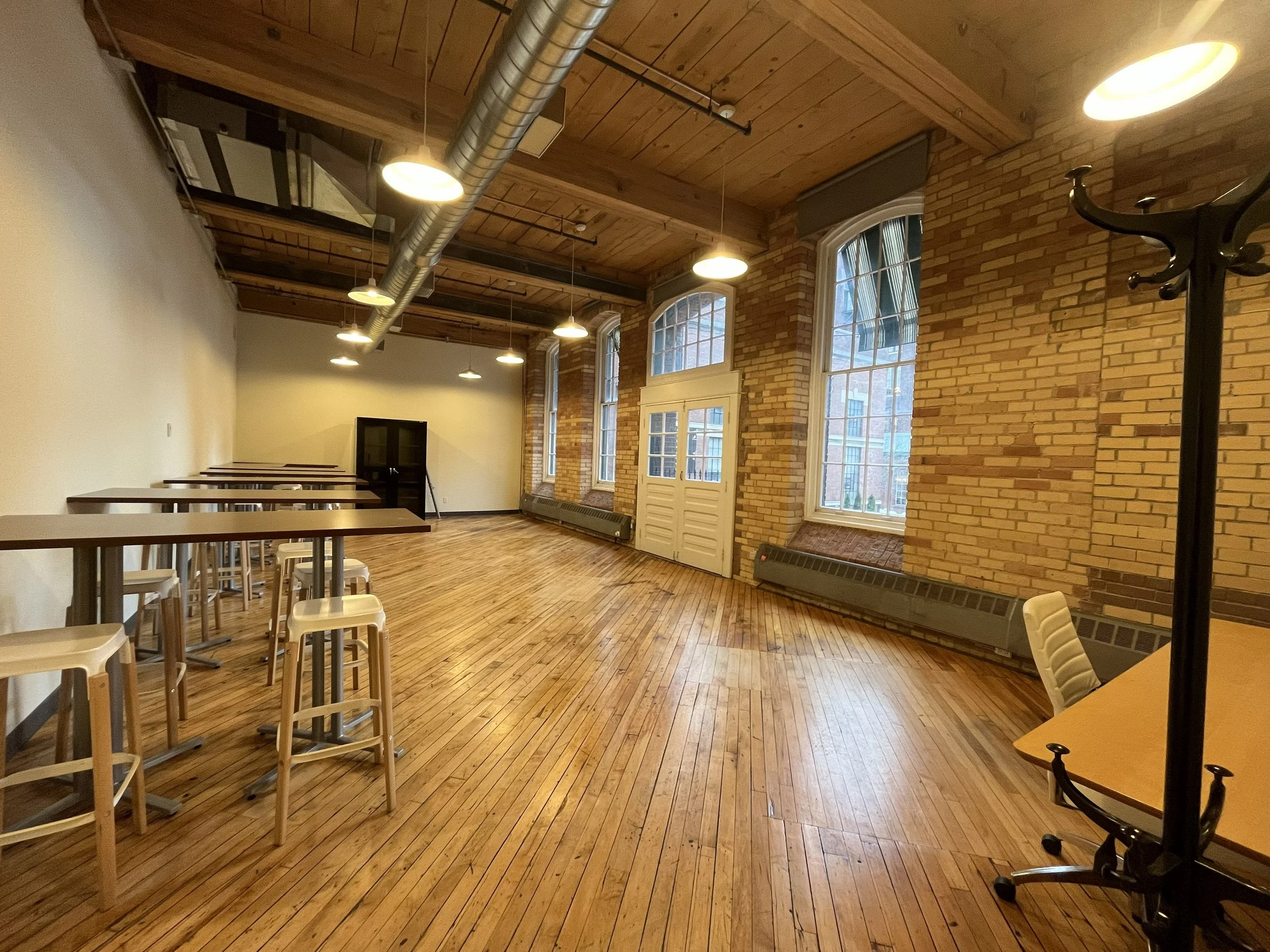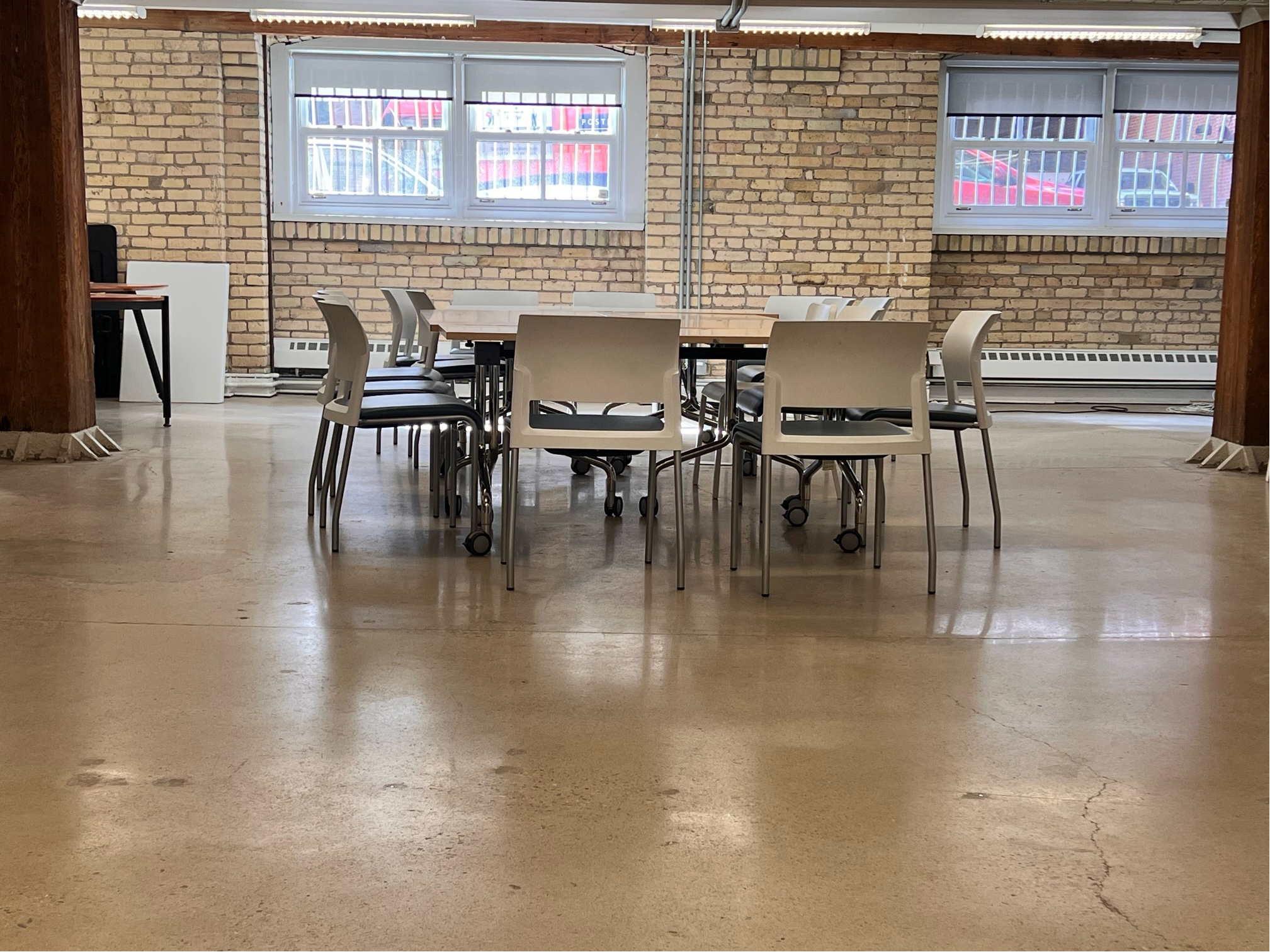 Features Bright brick and beam space. Meeting room, storage. East view.